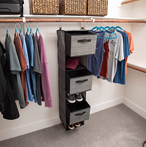 Internet’s Best Hanging Closet Organizer with Drawers – 6 Shelf – 3 Drawers – Clothing Sweaters Shoes Accessories Storage – College Dorm Essential – Grey