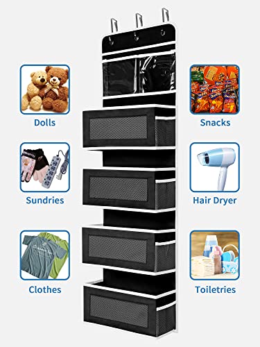 Specification: JARLINK 2 Pack 5-Shelf Over Door Hanging Organizer, Foldable Wall Mount 4 Big Pocket Storage with PVC Clear Window, Large Capacity Storage for Bedroom, Kitchen, Cosmetics, Toys, Sundries, etc (Black)
