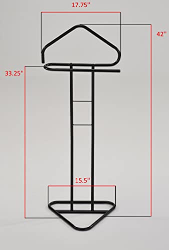 KB Designs – Metal Suit Tie Valet Stand Rack, Clothing Organizer, Black Product Description This metal valet will keep all your essential clothes and accessories organized and ready. The strong black metal ensures durability, while the bar and hanger holds your daily clothing essentials securely. Features Finish: Black Material: Metal Number of Bars: 1 Valet Style: Freestanding Assembly: Required Dimensions Overall Dimensions: 18″W x 15.5″D x 42″H Height From Floor to Tie Rack: 33″