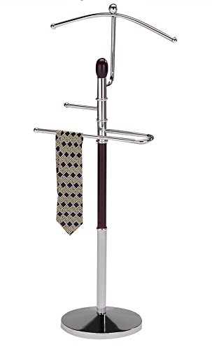 KB Designs – Wood/Metal Suit Tie Valet Stand Rack, Clothing Organizer, Chrome/Walnut Product Description Perfect in your dressing room, the Metal Valet brings a dapper look and smart style home. This valet has a hanger for a coat, hat, and tie or scarf. Its handsome metal chrome design is accented with wood in a walnut finish. This hat and coat valet stands tall enough to keep clothes from touching the ground and does it in style. Features Finish: Chrome/Walnut Material: Metal/Wood Number of Hooks: 3 Valet Type: Free Standing Assembly: Required Dimensions Overall Dimensions: 18″W x 11″D x 42″H Jacket Hanger Size: 18″W – 40.5″H From Floor Tie Bar Size: 30″H From Floor Pants Bar Size: 16.5″W Base Size: Diameter 11″