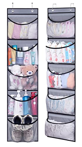Specification: KEETDY Over the Door Organizer Storage for Closet with 5 Pockets Organizer for Bedroom Bathroom, 2 Pack(Grey)