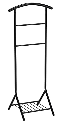 With its sleek black finish and freestanding design, this valet stand is the perfect addition to any bedroom or dressing room.