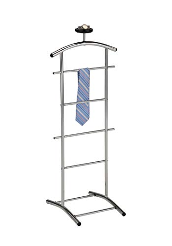 Made from durable chrome metal, this valet stand features four bars that can hold ties, pants, belts, and more.