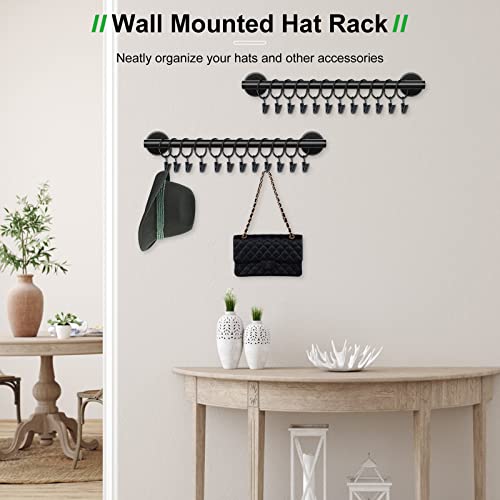 Specification: Lunies Hat Rack for Wall with 24 Hooks, Hat Organizer Holder for Baseball Caps, Cap Organizer Hanger, Hat Hanger for Closet, Black Hat Holder with Clips 2 Pack