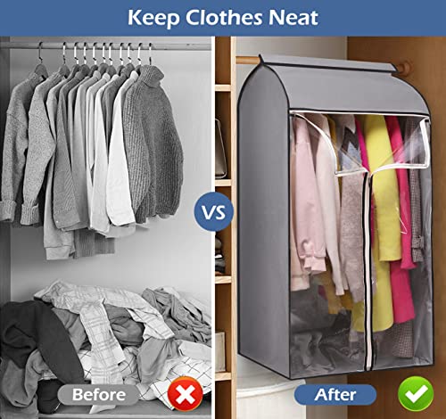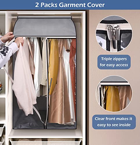 MISSLO 43″ Hanging Garment Bags for Storage Well Sealed Clothes Dust Cover with Large Clear Window and 3 Zippers Opening for Suit Coat Closet Rack (Rack not included), 2 Packs