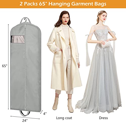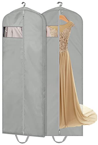 MISSLO 65″ Long Garment Bags for Travel Dress Bags Wedding Dress Cover Waterproof Clothing Bags Storage Traveling Clothes Protector for Closet Wardrobe Bags 2 Packs for Gowns, Tuxedos, Coats, Gray