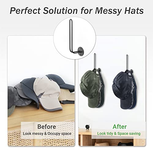 Minimalist & Highly Efficient Hat Organizer: Simple L-shaped design, our hat hanger is minimalist and stylish, providing you a simple but efficient solution to improve the status quo of your messy hats. Hats can be hung stacked on the hanger, set of 2 metal hat holders can amazingly organize up to 20 hats.