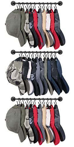 Specification: Mkono Set of 3 Hat Rack for Wall Baseball Cap Organizer Holder with 30 Hooks Modern Metal Hat Storage Display Rack Wall Mount Cowboy Hat Hooks Rack for Closet Bedroom Organize