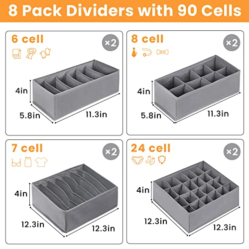 najiaxiaowu 8 Packs Underwear Drawer Organizer,Underwear and Bras Drawer Organizers for Clothing with 90 Cells Fabric Foldable Grids Dividers Box for Socks,Underwear, Bras and Ties