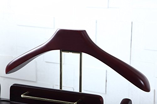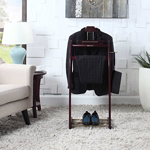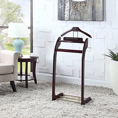 Specification: Proman Products Windsor Suit Valet Stand VL16140 with Contour Hanger, Tray, Trouser Bar, Tie Bar and Shoe Rack, 17″ W x 14″ D x 40″ H, Mahogany