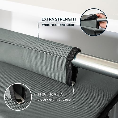 ✅Incredibly Strong – Not only is our hanging storage organizer easy to assemble, sturdy, and durable, it can hold up to 30 pounds! Each shelf is reinforced with a 2mm thick support, so go ahead and stack 15 pairs of denim jeans if you like. The thick hook and loop fastener rail attachment has extra rivets to prevent fraying, while the 120 GSM non-woven fabric is tear-proof. That means you’ll have our organizer around to provide you with many years of stress free closet management.