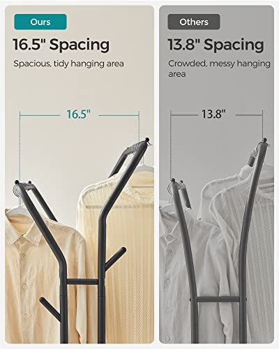 [Versatile Storage] With a high rail and a low rail for hanging clothes of different lengths, hooks on both sides for bags and hats, and a bottom shelf for boxes and shoes, this clothes rack keeps all your essentials in one place