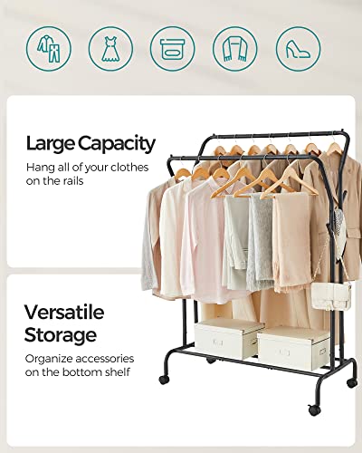 SONGMICS Clothes Rack, Double-Rod Clothing Rack with Wheels, Heavy-Duty Metal Frame, Garment Rack, 220 lb Max. Total Load, 40.7 Inches Wide, Clothes Storage and Display, Black UHSR107B01