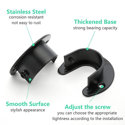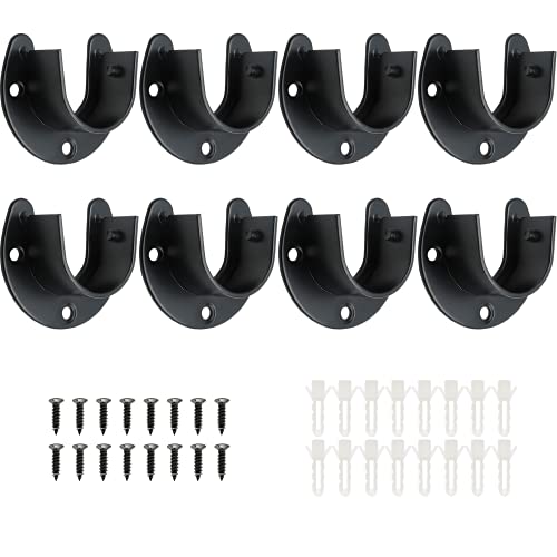 Specification: Suiwotin 8 Packs Stainless Steel Closet Rod End Supports 1-1/3 Inch Wardrobe Bracket Heavy Duty Closet Pole Sockets Flange Rod Holder, U-Shaped with Screws, Black