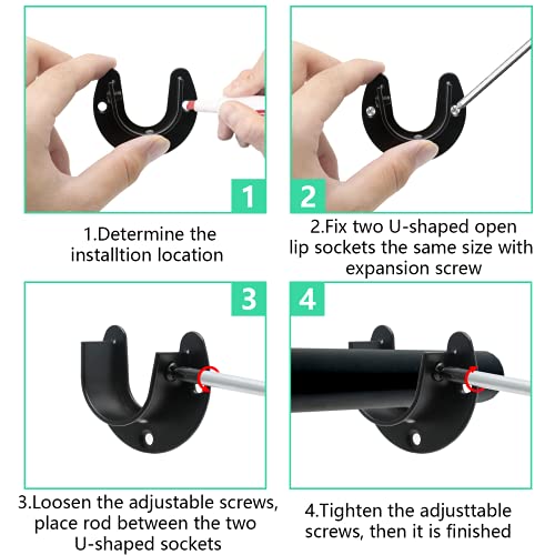 【Novelly Designed】– Designed for use with closet rods up to 34mm(1-1/3 inch) in diameter. Each bracket has 3 holes fixed design, making it more stable and solid. U shaped sockets have holes for adjusting screws to prevent them from rotating.