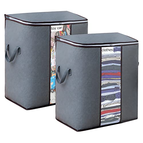 toresper 2Pcs closet organization and storage,Large Capacity toy storage with Reinforced Handles,Foldable Storage Bags with Clear Window for Clothes Pillow Blankets Bedding