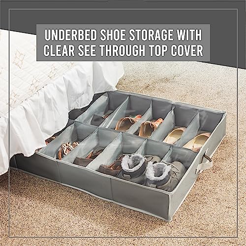 Under Bed Shoe Storage Organizer – Set of 2 – TEAR-RESISTANT Heavy Duty 600D Material – Shoe Organizer Under Bed – Fits Men’s and Women’s Shoes, High Heels, and Sneakers – Up to 32 Pairs – Extra-Strong Zipper – Grey – Perfect for College Dorms