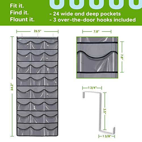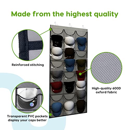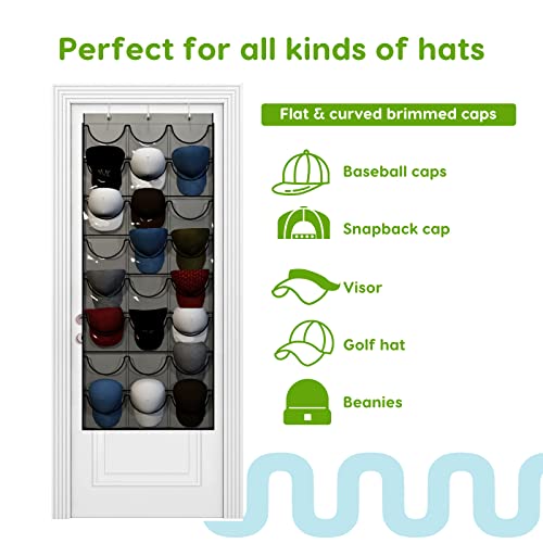 Unjumbly Baseball Hat Rack, 24 Pocket Over-The-Door Cap Organizer with Clear Deep Pockets to Display Your Baseball Caps Collection, Complete with 3 Over Door Hooks, Fit 1 3/8″ and 1 3/4″ Door Width