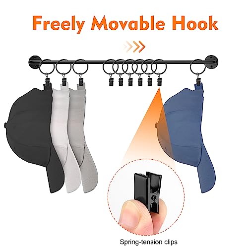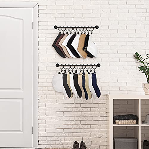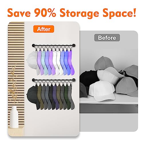 Large Capability Hat Rack: This set of 2 hat hangers organizer for wall comes with 20 pack metal ring with clips, which can hold up to 20 caps. This cap organizer is a perfect storage tool for caps storage, free up your closet space.