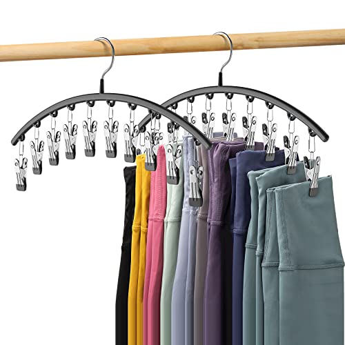 Volnamal Legging Organizer for Closet, Metal Yoga Pants Hangers 2 Pack w/10 Clips Holds 20 Leggings, Hangers Space Saving Hanging Closet Organizer w/Rubber Coated Closet Organizers and Storage, Black