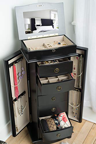 Specification: Alveare Home North Jewelry Armoire – Locking Storage Organizer with Seven Spacious Drawers, Black