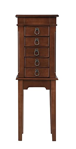 Specification: Hives and Honey Kennedy Jewelry Armoire – Modern Wood Storage Organizer with Necklace Hooks, 5 Drawers, and Vanity Mirror, Walnut