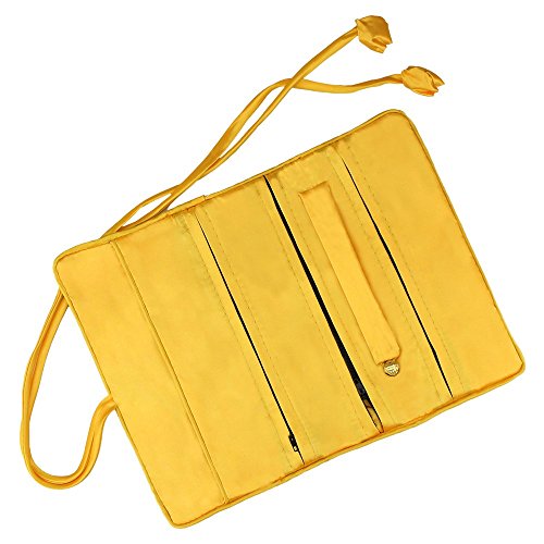 Specification: Lidwot 1 Piece Yellow Embroidery Flower and Bird Silk Brocade Jewelry Roll Bag,Travel Jewelry Organizer Bag with Ribbons Tie Close