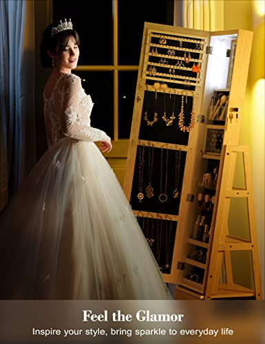 [Touch Screen Lighted Mirror] Convenient for make-up/jewelry fitting/skin care, no need to open & close the door frequently to use the full body mirror. Unlike others that use blinding exposed light beads, our jewelry mirror adopts laser plating technology, so you won’t feel eye pain even when looking directly at the light source, protecting your eyes