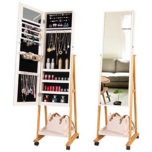 【Jewelry Organizer Expert】The exquisitely designed standing jewelry armoire allows you to decorate your loving room. The professional storage ability organizes your jewelry in order. Internal velvet can protect your jewelry from scratches, cabinet avoids the dust and keeps your jewelry shiny.