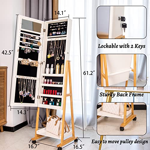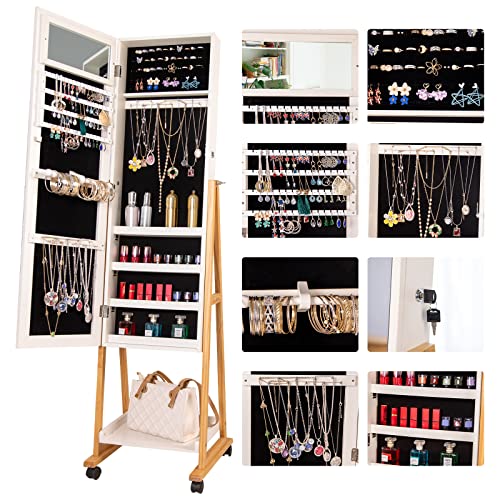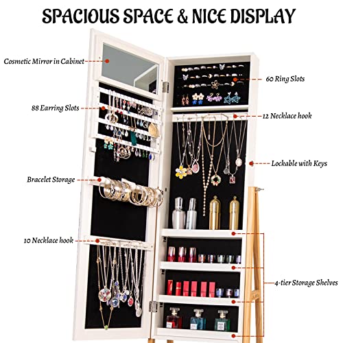 【Safe and Sturdy】Lockable Standing Jewelry Organizer is equipped with one lock and 2 keys to avoid being easily opened. The sturdy MDF wood has superior quality and structure, which provides long-term protection of your jewelry.