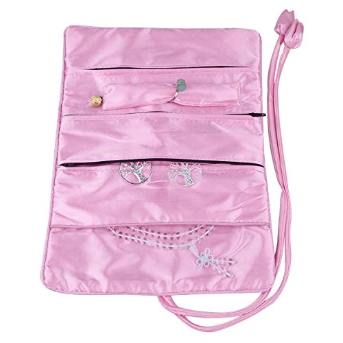 Specification: TUMBEELLUWA Embroidery Travel Jewelry Bag Roll Embroidered Flower and Bird Brocade Organizer with Tie Close, Pink