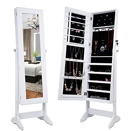 Specification: Uten Lockable Jewelry Armoire Large Jewelry Cabinet with Standing Mirror Jewelry Holder Organizer Storage, 4 Angle Adjustable (White)
