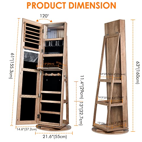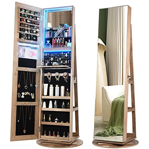 Specification: Vlsrka LED Light Jewelry Cabinet with Full Length Mirror 360° Swivel, Large Jewelry Organizer Armoire Lockable Free Standing Mirror with Jewelry Storage, Inside Makeup Mirror, Foldable Makeup Shelf