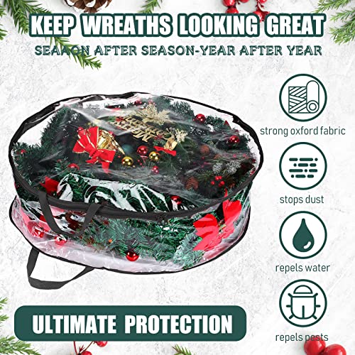 Specification: 4 Pieces Wreath Storage Container Christmas Clear Xmas Wreath Storage Bag 24 Inches Christmas Plastic with Dual Zippers and Reinforced Handles Xmas Garland Container for Xmas Seasonal Wreath (Black)