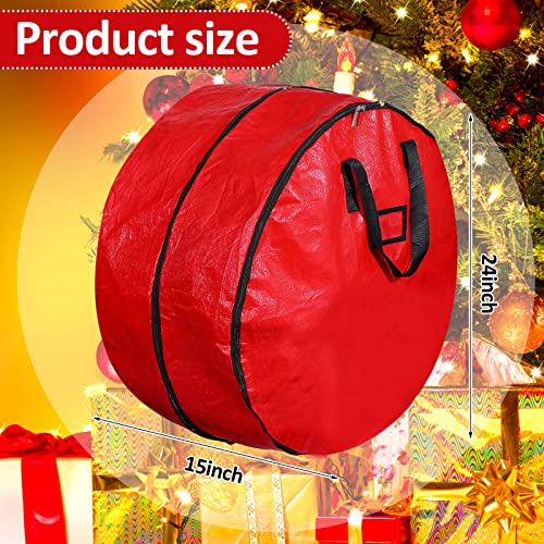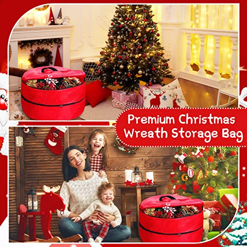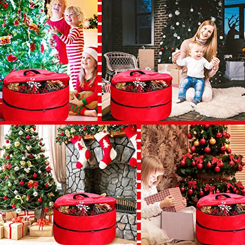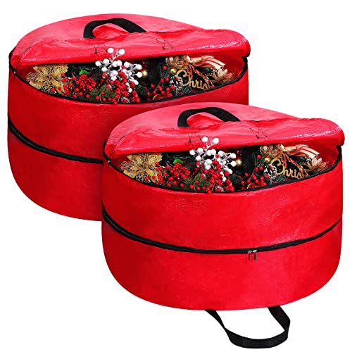 Double Layer Christmas Wreath Storage Container Bags Double Wreath Storage Container Zippered Wreath Bag with Handle Festive Wreath Storage Box Storage for Xmas Wreath Garlands, Red (2 Pcs, 24 Inch)