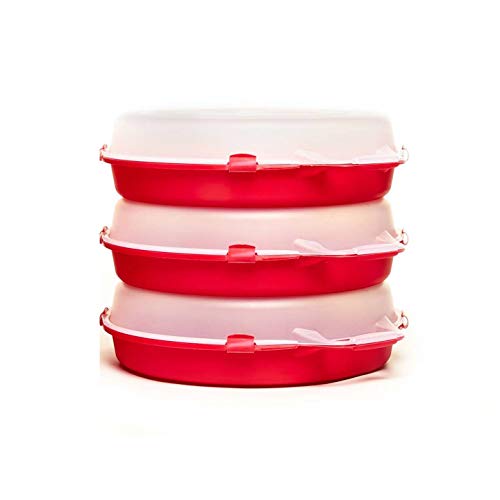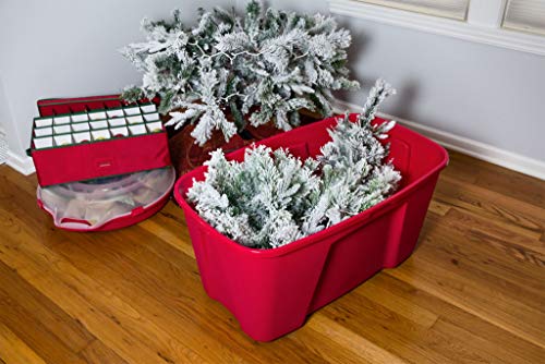 Specification: HOMZ Set of 3 Holiday Wreath Plastic Storage Containers, Holds Up to 24” Diameter, Secure Latching Lid and Easy Grip Handle, Stackable and Nestable, Red/Clear