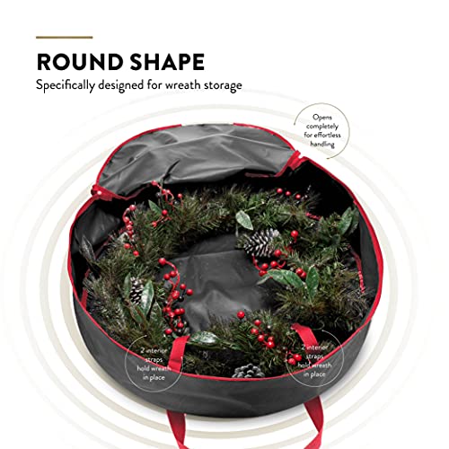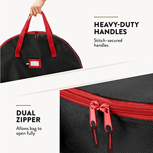 ZOBER Christmas Wreath Storage Container – 24 Inch Wreath Bag for Artificial Wreaths – Dual Zippered Wreath Storage W/Strong, Durable Handles – Black