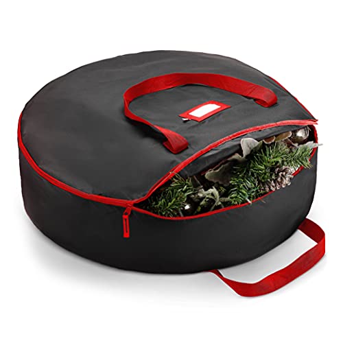 Specification: ZOBER Christmas Wreath Storage Container – 24 Inch Wreath Bag for Artificial Wreaths – Dual Zippered Wreath Storage W/Strong, Durable Handles – Black
