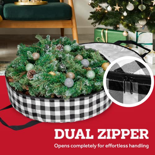 Specification: Zober Wreath Storage Container – 2-Pack, 30x30x7.5 Inch Wreath Storage Bag w/Zipper and Dual Handles for Artificial Christmas Wreaths, Garlands & Holiday Decorations – Wreath Box, Red & Black Prints