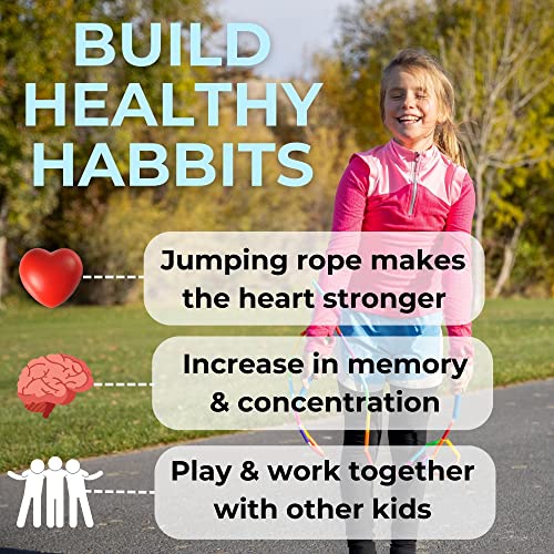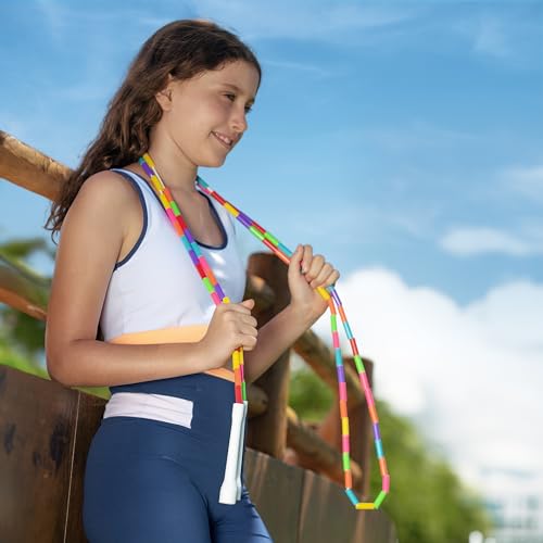 Beaded Kids Exercise Jump Rope – Segmented Skipping Rope for Kids – Durable Shatterproof Outdoor Beads – Light Weight and Tangle Free Exercise Training – Adjustable Kids Jump Rope for Fitness – 7ft