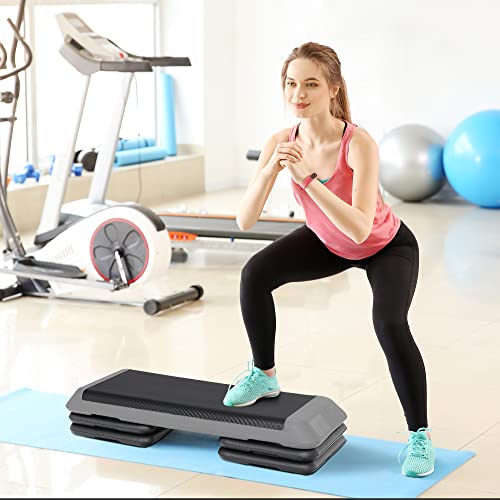 Specification: ZENY 43” Exercise Aerobic Step Platform Adjustable Fitness Stepper with 4 Detachable Risers Fitness Workout Stepper for Home Gym Cardio Strength & Training (Grey)