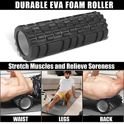 🧘🏻♂️THE BEST AUXILIARY TOOL FOR EXERCISE:There’s our premium foam roller and stick for those hard-to-roll areas , like the quad , shin , and inner thigh .Stretch overworked and strained muscles of the leg , arms , and feet by rolling during your warm up and cool downs .Flush lactic acid from muscle tissue after your workout .