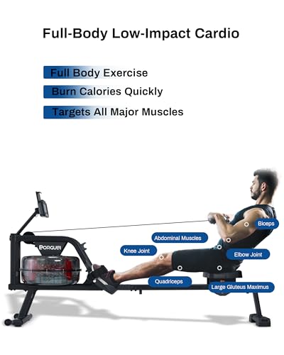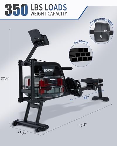 BORGUSI Water Rowing Machine for Home Use, 350 Lbs MAX Weight Capacity Rower Machine with Comfortable Seat, Cushion LCD Monitor and Tablet Holder
