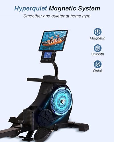 Specification: ECHANFIT 32 Levels Electrical Magnetic Rowing Machine with Preset Programs, LCD Monitor with Backlight and Tablet Holder, Adjustable Resistance, 350 LB Weight Capacity Foldable Rower for Home Gym Use