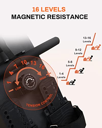 [16 Levels Magnetic Resistance] The no-touch magnetic resistance system and improved belt drive system give you a quieter, smoother rowing experience. The adjustable resistance options from levels 1 to 16 offer you ideal tension for each training phase, maximizing your workout.