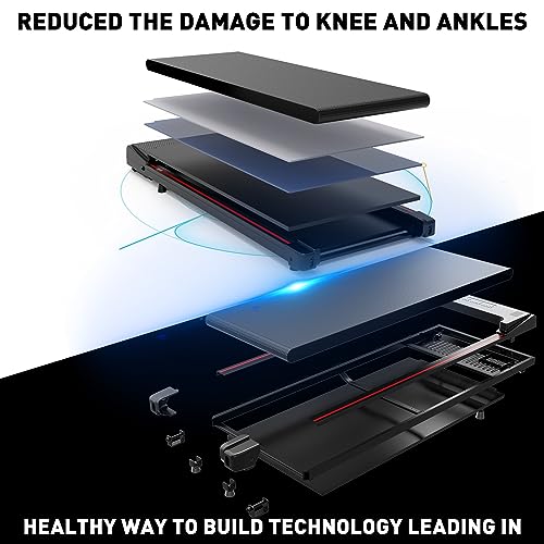 [ENLARGED RUNNING PLATFORM & SHOCK ABSORPTION DESIGN] The walking treadmill offers shock absorption design, allowing you to walk or exercise without damaging your knee or ankle. The wide walking area gives you a more comfortable experience.