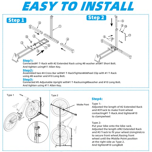 EASY TO ASSEMBLE – This vertical bike rack is easy to assemble. The standing bike rack instruction manual is included in the package with simple steps that you can quickly install it in a few minutes. Assembly is quick and the tools required are included.