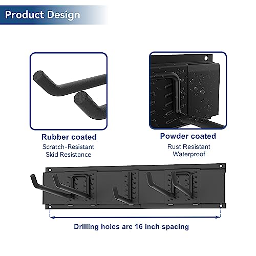 🎿【Heavy Duty & Durable】Made of high-strength steel, the mounting holes are 16” apart! perfect for studs, holds up to 100lbs. Durable powder-coated rack and rubber-coated hooks. Resists rusting, chipping and cracking.