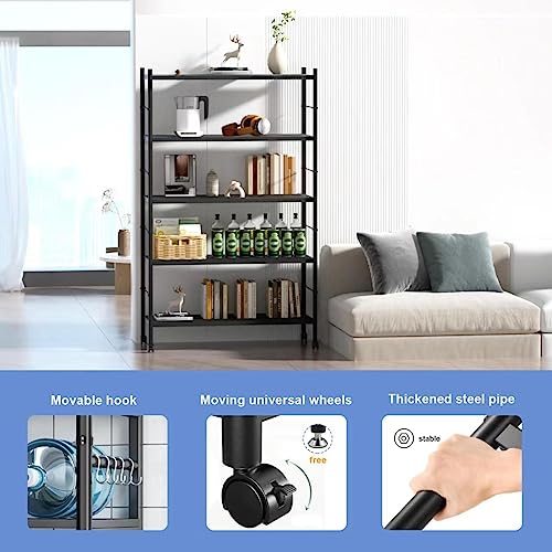 Adjustable height: the 5-tier storage shelf can be adjusted to suit the space used. The height of each shelf can be adjusted by moving the crossbar up and down, flexibly adjusting to different heights according to your needs.
