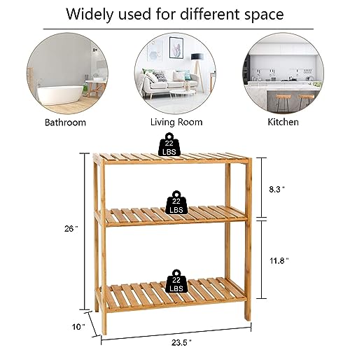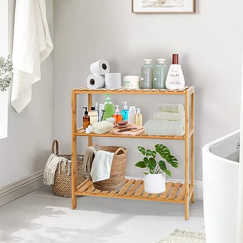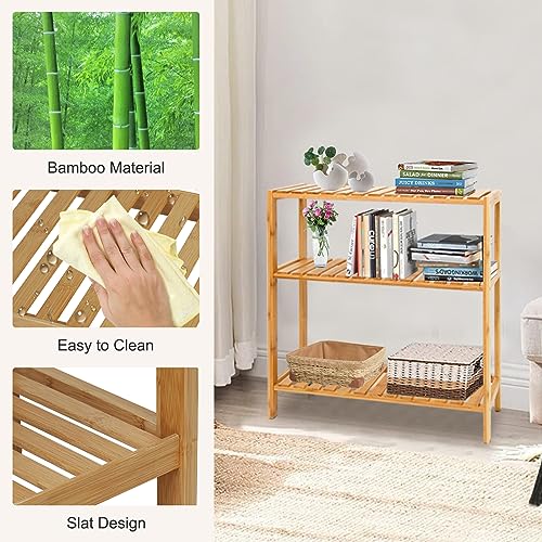 kinbor Bamboo Rack Multifunctional Bathroom Kitchen Living Room Holder Plant Flower Stand Utility Storage Shelf (3-Tier)